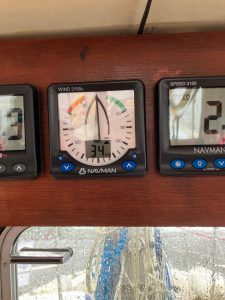 The 09.30 bridge on Sunday morning proved busy as the Jaunters together with a number of yachts aiming to take part on the NECRA Whitby to Hartlepool race at 10.00 Again several of the Jaunters opted to leave straight for Hartlepool while others held back to join in the race. During the morning a fickle wind built up to a brisk Westerly at times gusting over 35 knots. It was a challenging reach all the way, putting in reefs only to shake them out again a short time later. The sea state built up on the leg across the Tees Bay making for a spicy sail to accompany a spicy curry at Hartlepool Marina’s Sheesh Mahal that night. The Karaoke Bar performances later that evening were something that might go down into SYC Jaunting legend thanks to the harmonic talents of Helen (My Gal) and Bernie (Rascal)