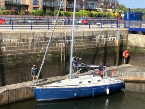 Leaving Scarborough for Newcastle City Marina the first leg to Whitby was coordinated to bond with Whitby Yacht Club’s Vernon Dawson Race. With a steady breeze from the south west around 25 boats crossed the line and tacked into Scarborough’s South Bay to round the SYC #8 mark and head for the easterly #5. Thereafter a multi coloured array of Spinnakers set neatly to starboard made for a fine sight all the way north to Robin Hood’s Bay where a reach took them to the Whitby Bell Buoy. Three SYC boats had left prior to the race start taking full advantage of the ebb and were headed directly to Hartlepool to await the arrival the following day of the rest of the Jaunt Fleet. It was an excellent day and an exciting sail arriving Whitby bay at low water necessitating time at anchor for sufficient water to enter the harbour and a wait for the first bridge opening to access the marina two hours before high tide. WYC put on a terrific barbeque the clubhouse was packed, spirits were high and there was a wonderful air of camaraderie as the Race results were announced.